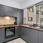 Apartamentul Minimalist Green & Grey din București, cu o cameră, se află la aproape 5 minute de mers pe jos de Liberty Center și oferă o vedere asupra grădinii. Atracțiile din zonă includ Orășelul Copiilor, situat la 2,6 km distanță, și Biserica Crețulescu, aflată la 3,4 km de apartamentul de 60 m².